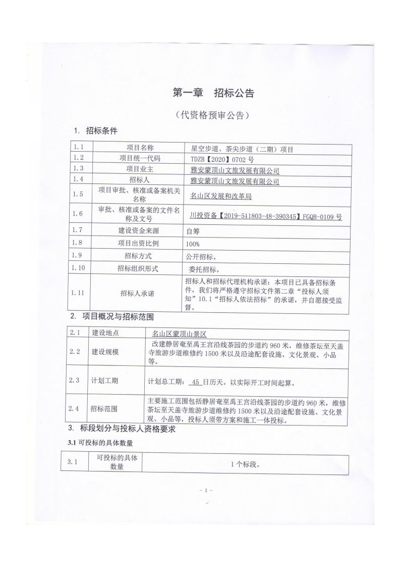 星空步道、茶尖步道(二期)項(xiàng)目施工招標(biāo)文件
