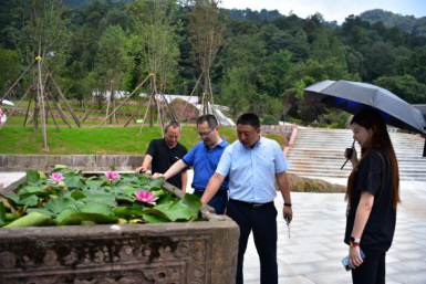 2020年8月10日上午,雅安市國資委黨委書記、主任江洪帶隊調研蒙頂山項目建設情況,雅安文旅集團黨委書記、董事長肖永昌、蒙頂山旅游公司黨董事長張京陪同調研。