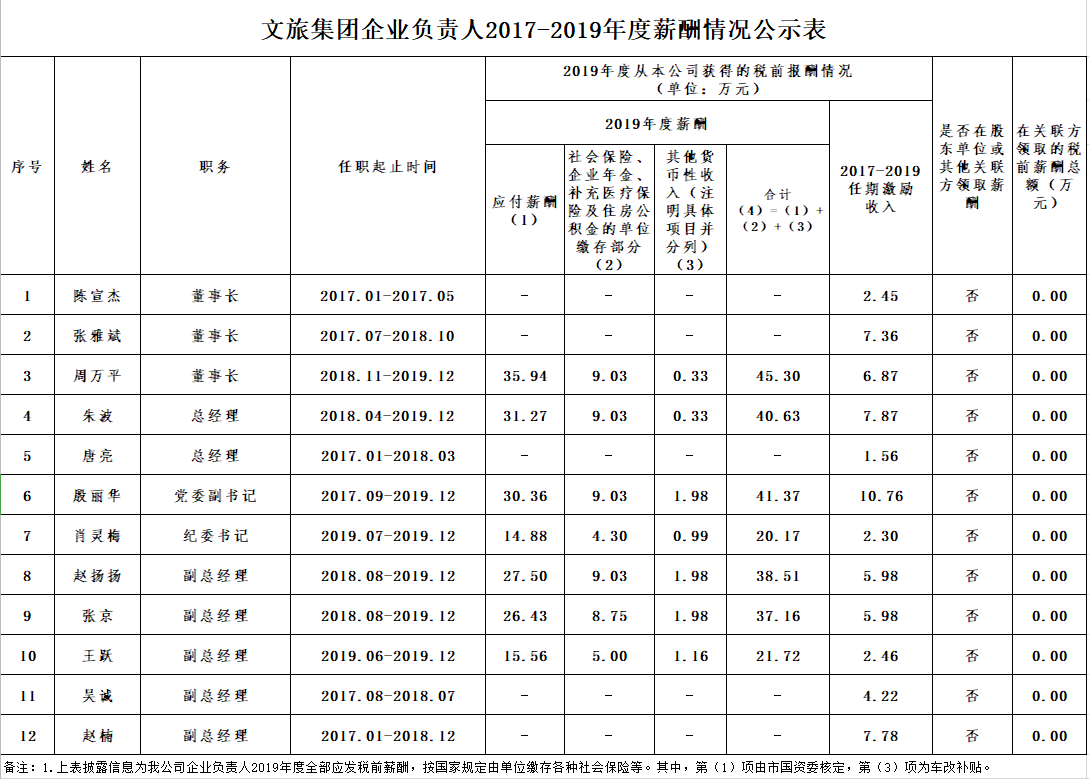 文旅集團企業(yè)負責人2017-2019年度薪酬情況公示表