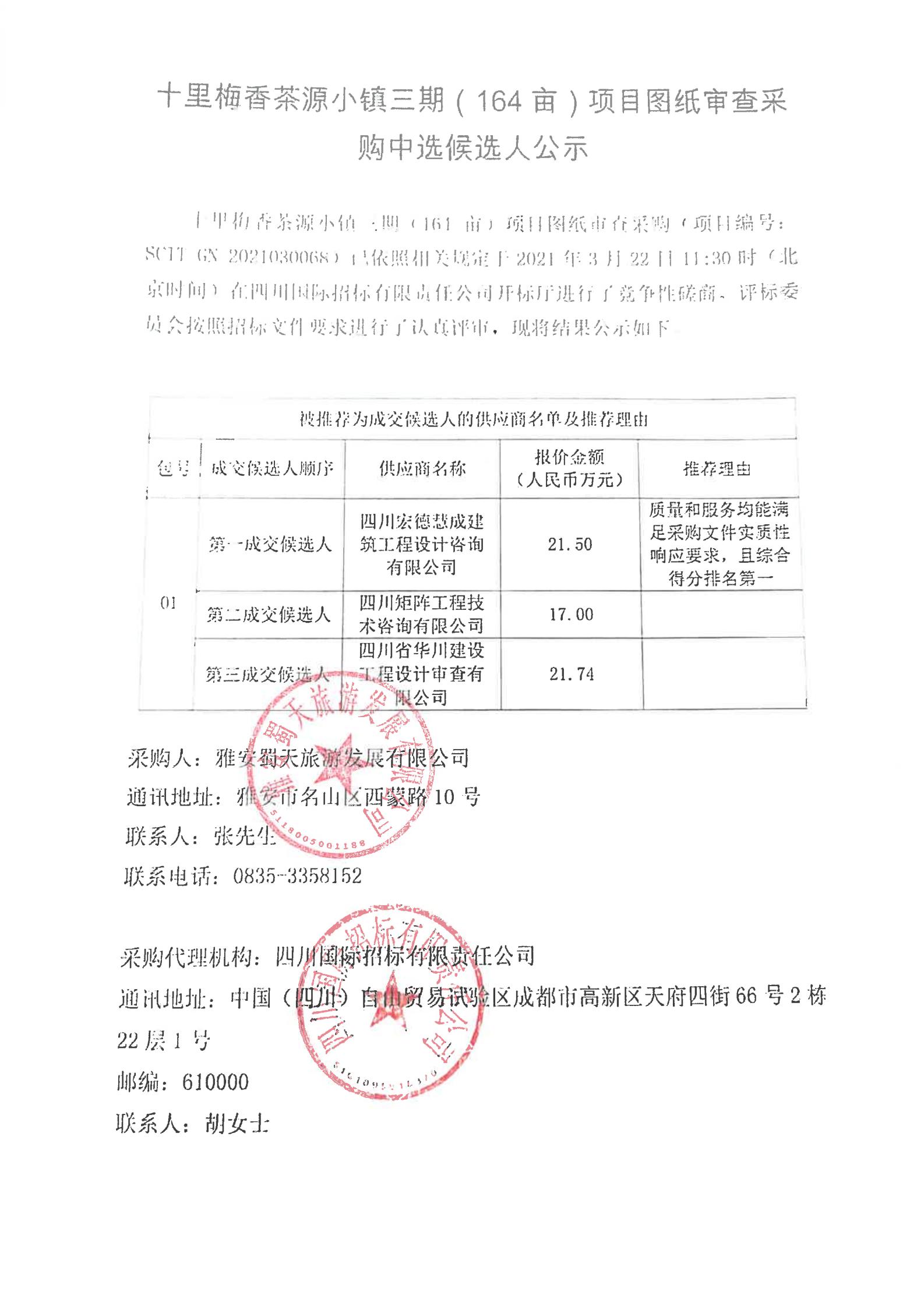 十里梅香茶源小鎮(zhèn)三期(164畝)圖紙審查采購中選候選人公示