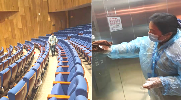 按市疾控中心消殺防疫工作要求,認真開展疫情防控工作。一是認真開展體溫監(jiān)測,每日為員工監(jiān)測體溫并做好登記,發(fā)現(xiàn)體溫異常及時上報;二是按疫情防控要求認真開展消殺工作,每日會前、會后對會議桌桌面、座椅扶手、過道、電梯、客房等區(qū)域進行消殺,做好消殺記錄,現(xiàn)場拍照并按時上報疾控中心;三是防疫物質(zhì)儲備到位到點,在會場門口、餐廳、房間等區(qū)域放置口罩、消毒濕紙巾、消毒凝膠等防疫物質(zhì),安排專人主動為代表們提供防疫物質(zhì)服務(wù)。