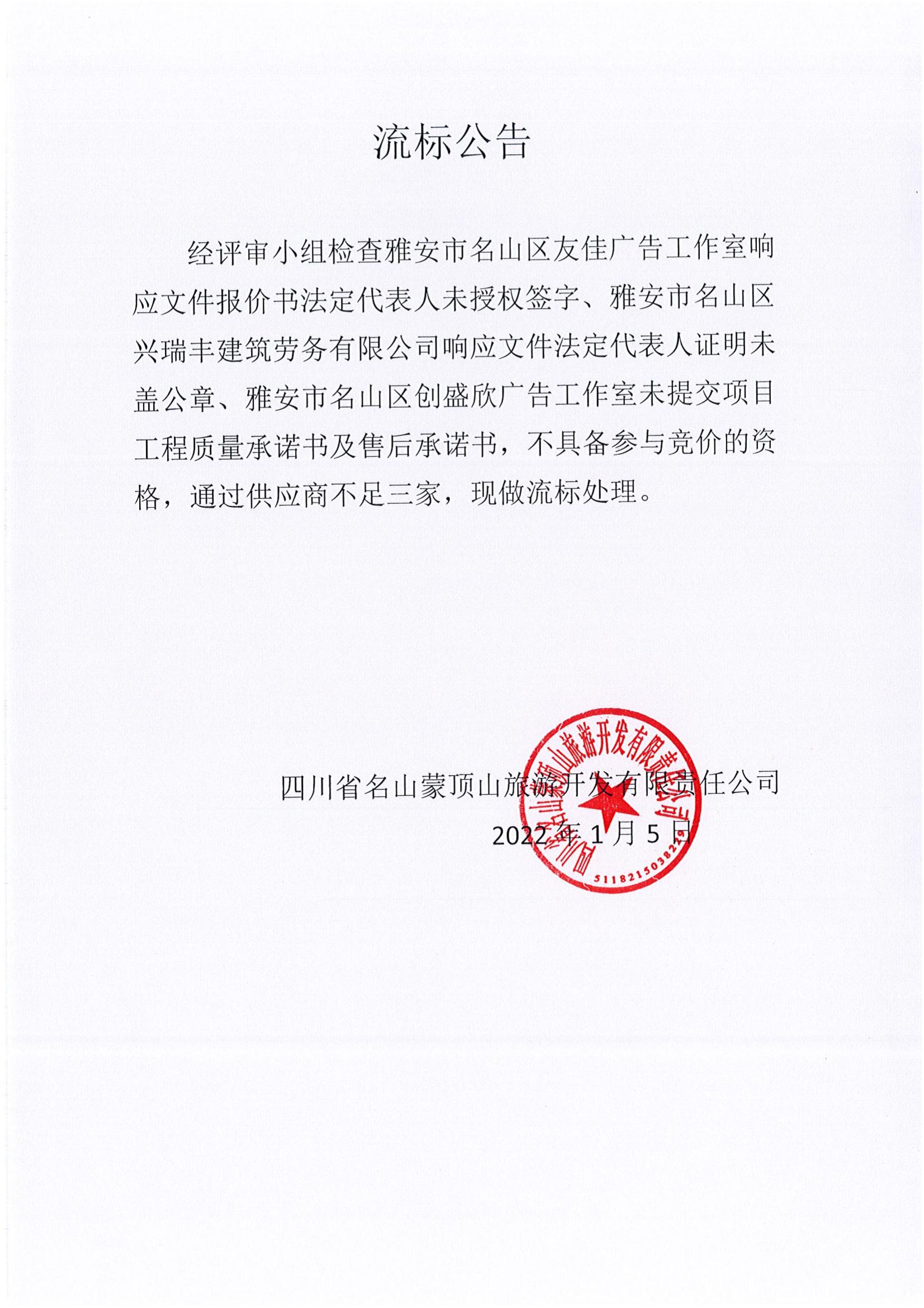 蒙頂山銀杏餐廳柴火雞長廊及銀杏樹下平臺設(shè)施改造提升項目供應(yīng)商資格審查流標公告