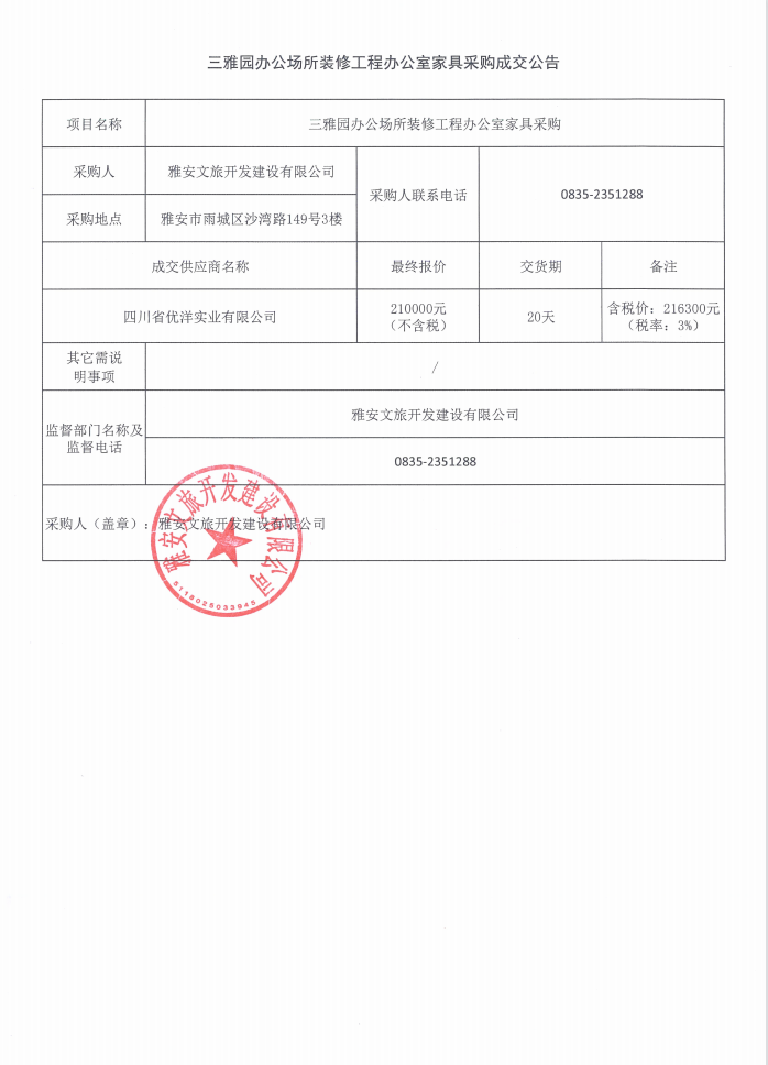 三雅園辦公場所裝修工程辦公室家具采購成交公告
