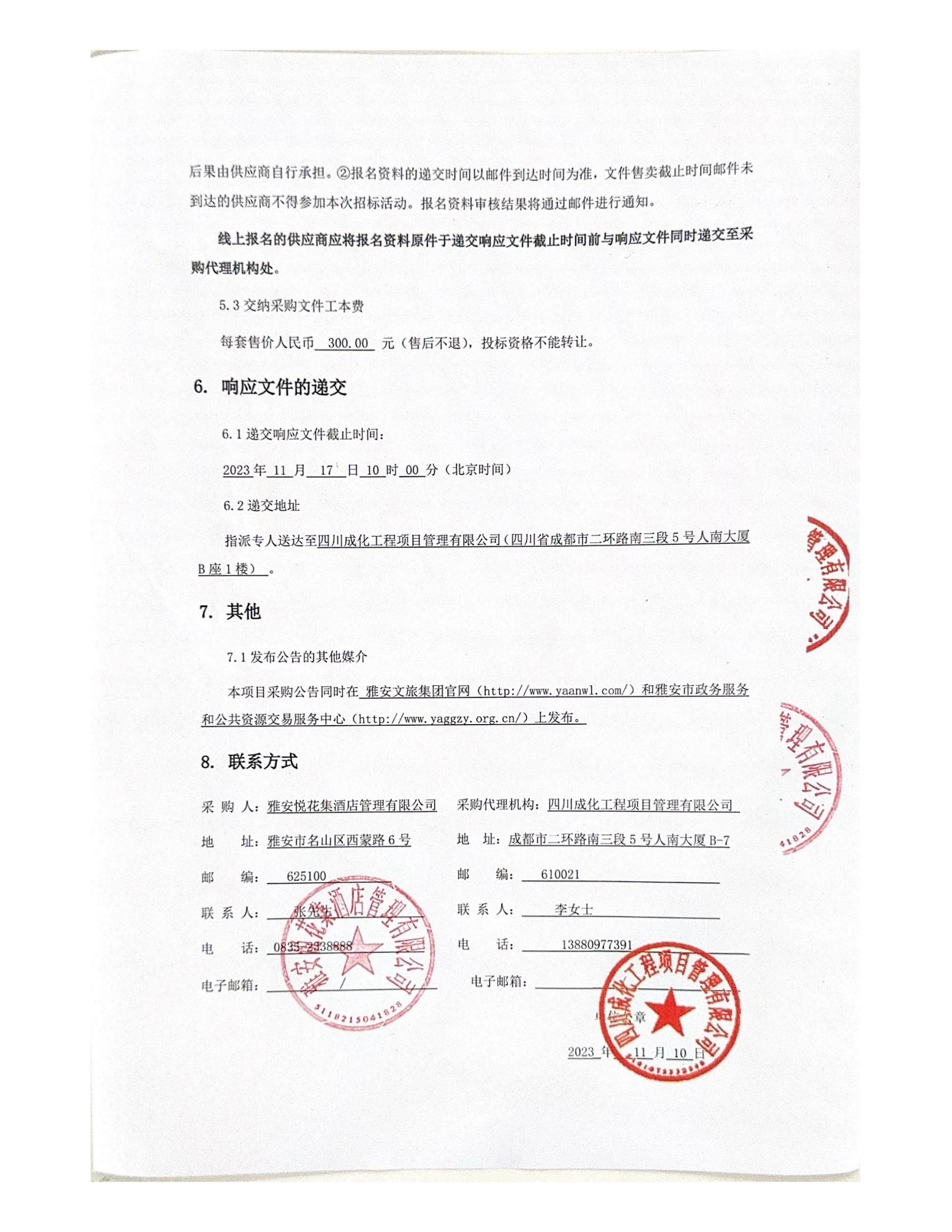 花間堂酒店茵香餐廳和潯梅廳、踏梅廳廚房服務(wù)外包 采購公告