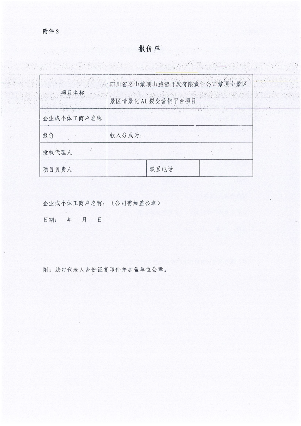 四川省名山蒙頂山旅游開發(fā)有限責任公司 景區(qū)情景化AI裂變營銷平臺項目招商