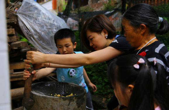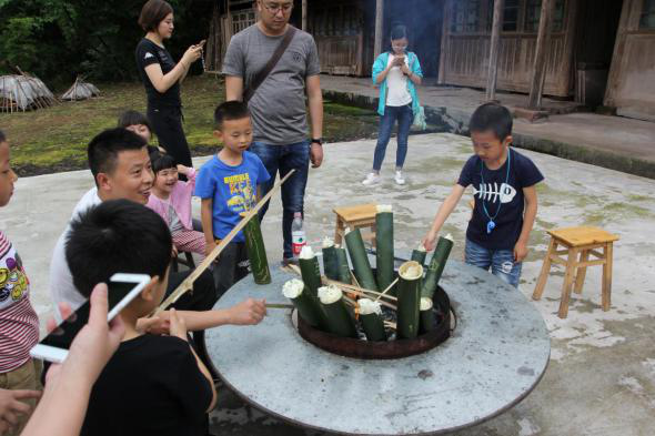 “碧螺谷親子自然體驗(yàn)營”是一堂生動的自然研學(xué)課堂,父母帶著孩子住農(nóng)家院、吃農(nóng)家飯、干農(nóng)家活,走進(jìn)山村、了解自然。一起調(diào)制雄黃酒,抹額黃、系五彩絲線、制香包祛毒驅(qū)毒,徒步螺山采草藥、斗百草,感受端午節(jié)民間風(fēng)俗。游客們還積極響應(yīng)“愛心后備箱”工程,根據(jù)所需,買走貧困戶家中的土雞、土鴨、蜂蜜、雅魚等農(nóng)特產(chǎn)品,村民就地取材自制的竹筒花器、原木畫片也成為“搶手貨”。