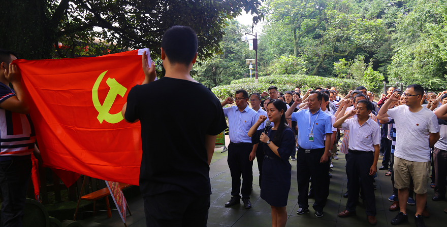 活動(dòng)中,城鄉(xiāng)黨員步行攀登蒙頂山,尋訪古茶樹、探訪甘露井、瀏覽皇茶園、拜謁茶神,了解家鄉(xiāng)、認(rèn)識(shí)雅安。在紅軍百丈關(guān)戰(zhàn)役紀(jì)念館外,由文旅公司支部書記殷麗華帶領(lǐng)90多名黨員重溫入黨誓詞,黨員干部鏗鏘的語調(diào),誠摯的心聲,既是莊嚴(yán)的承諾,也是每一名黨員的奮斗目標(biāo)。